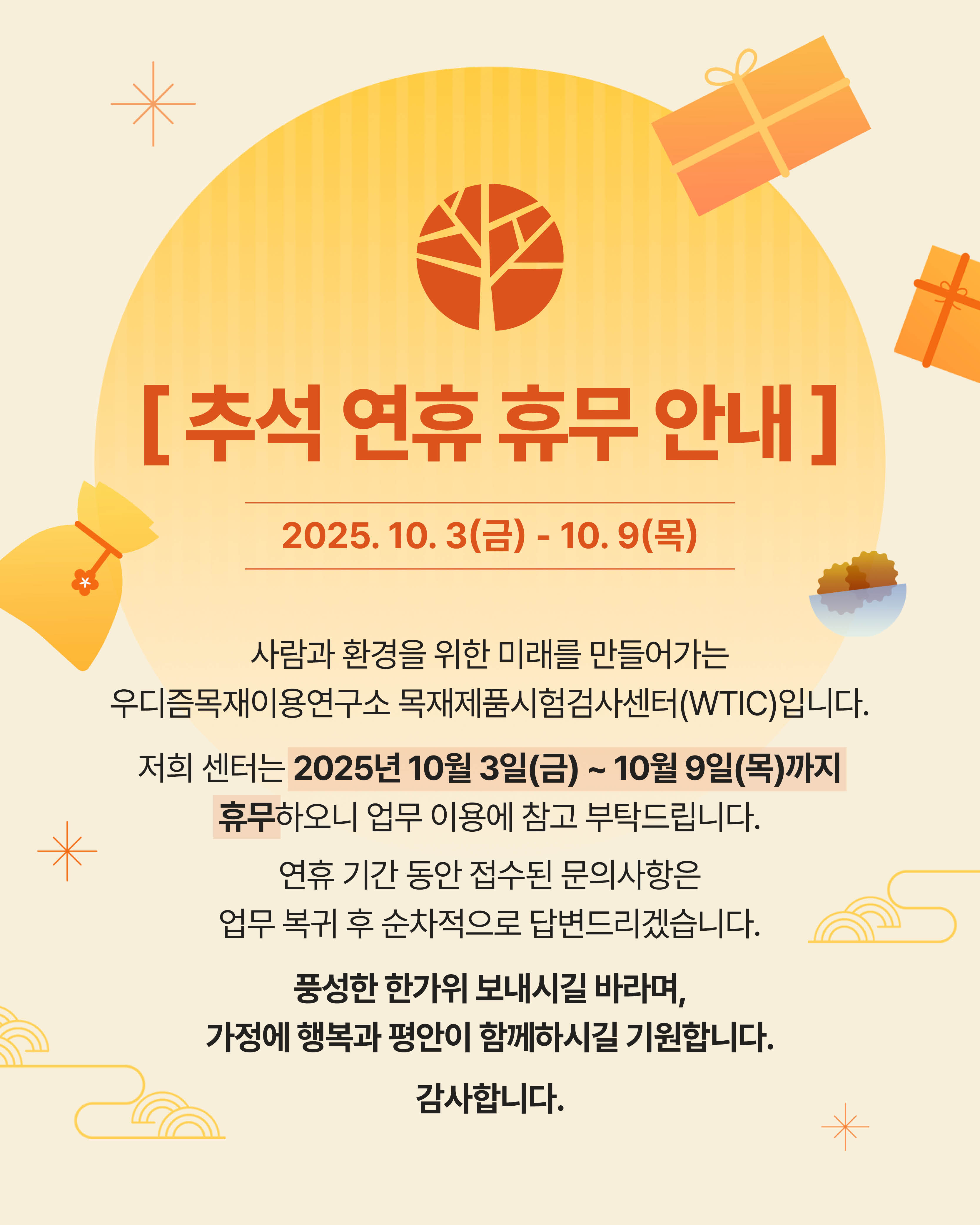 WTIC는 목재제품의 시험분석 업무를 통하여